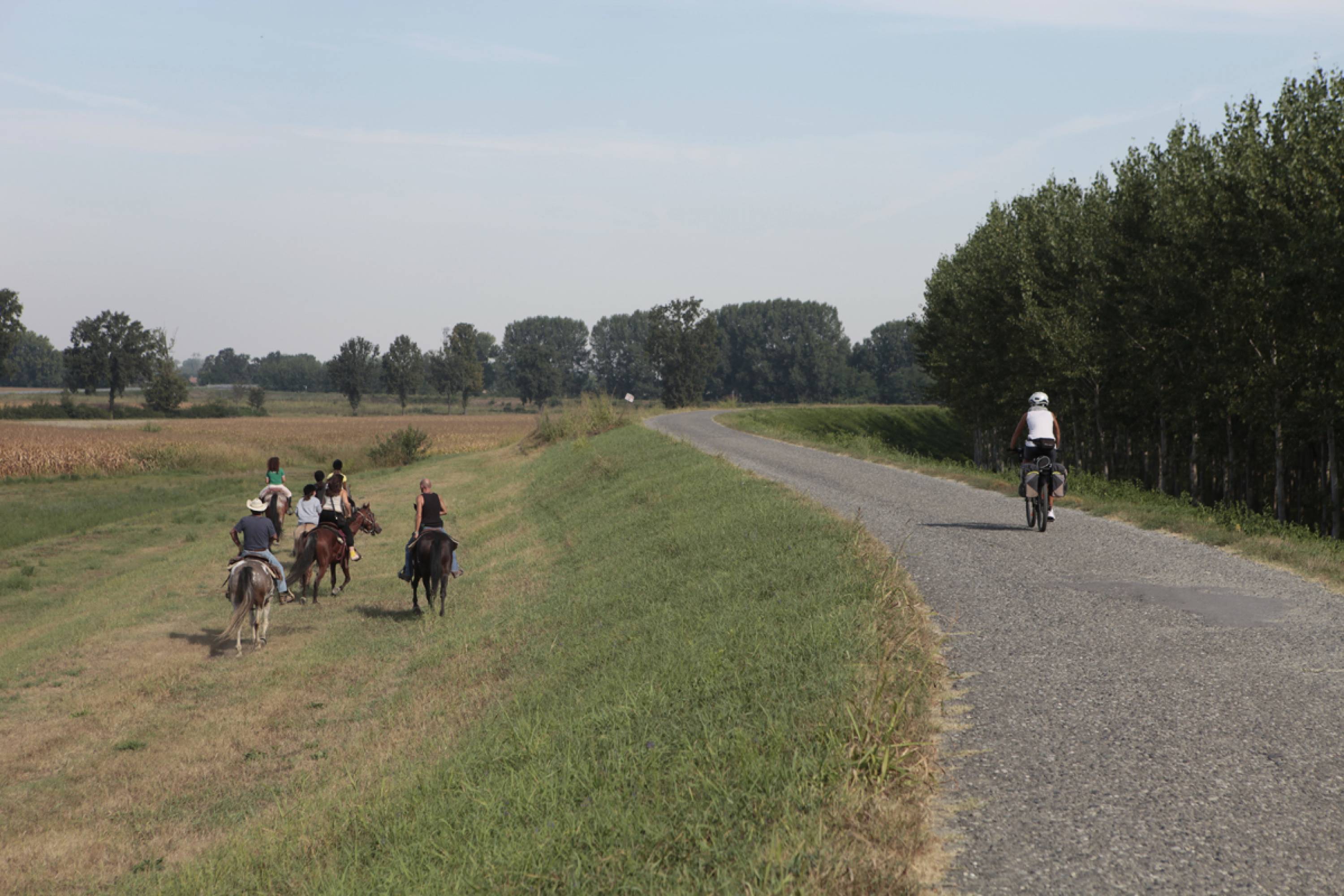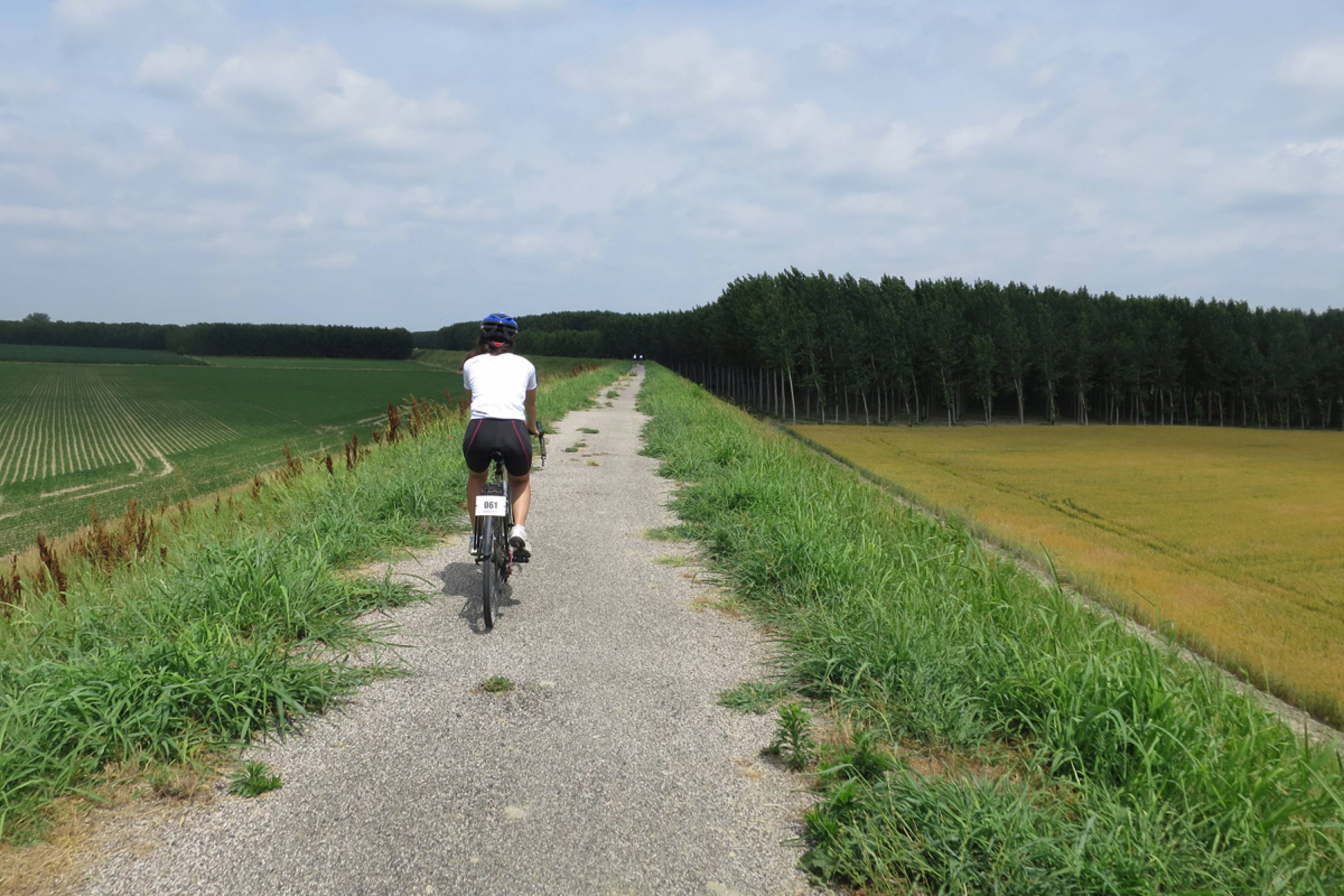 Sono 285 km attraverso campagne, su comode strade e ciclabili, per lo più asfaltate. A tratti si pedala vicino al fiume, altre volte invece, per l'ampio alveolo del Po, si è parecchio distanti, ma la strada è rialzata rispetto al resto del territorio e quindi offre un'ampia prospettiva dei dintorni. A Colorno si faccia una deviazione per vedere la Reggia, poi sosta a San Benedetto Po per visitare il Monastero e l'Abbazia e via verso Ferrara, una delle città rinascimentali più belle della penisola, patrimonio Unesco.