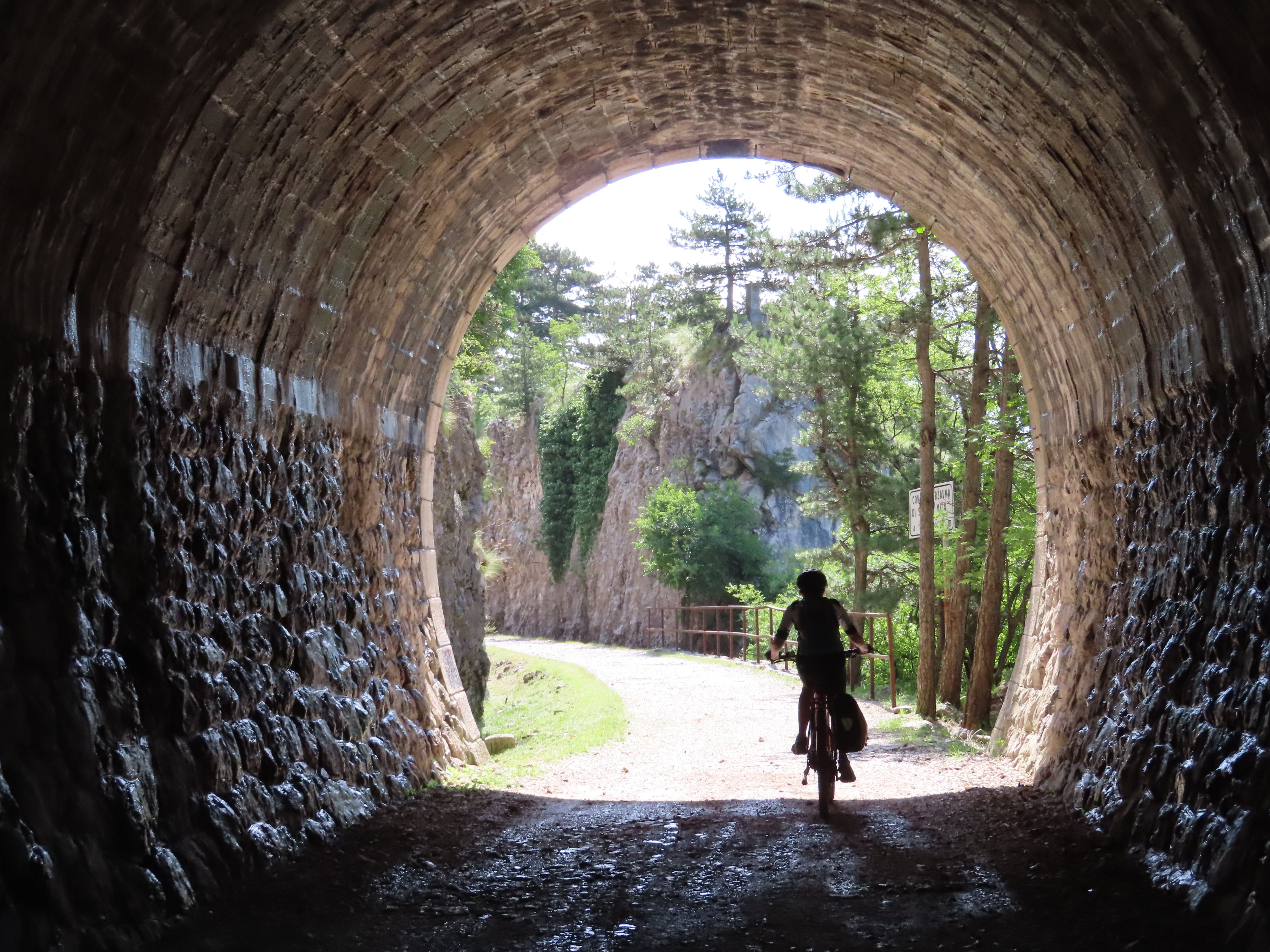 Si prosegue per la ciclopedonale intitolata a Giordano Cottur, segnalata come FVG2. Il tracciato ripercorre l’ex ferrovia Trieste-Hrpelje (Erpelle), attiva tra il 1887 e il 1959 e smantellata nel 1966. Questo percorso collega direttamente la Slovenia al centro di Trieste per un totale di 18 km, di cui 8 su strada sterrata. È un tragitto spettacolare, con una dolce pendenza che lo rende piacevole da percorrere in entrambe le direzioni.