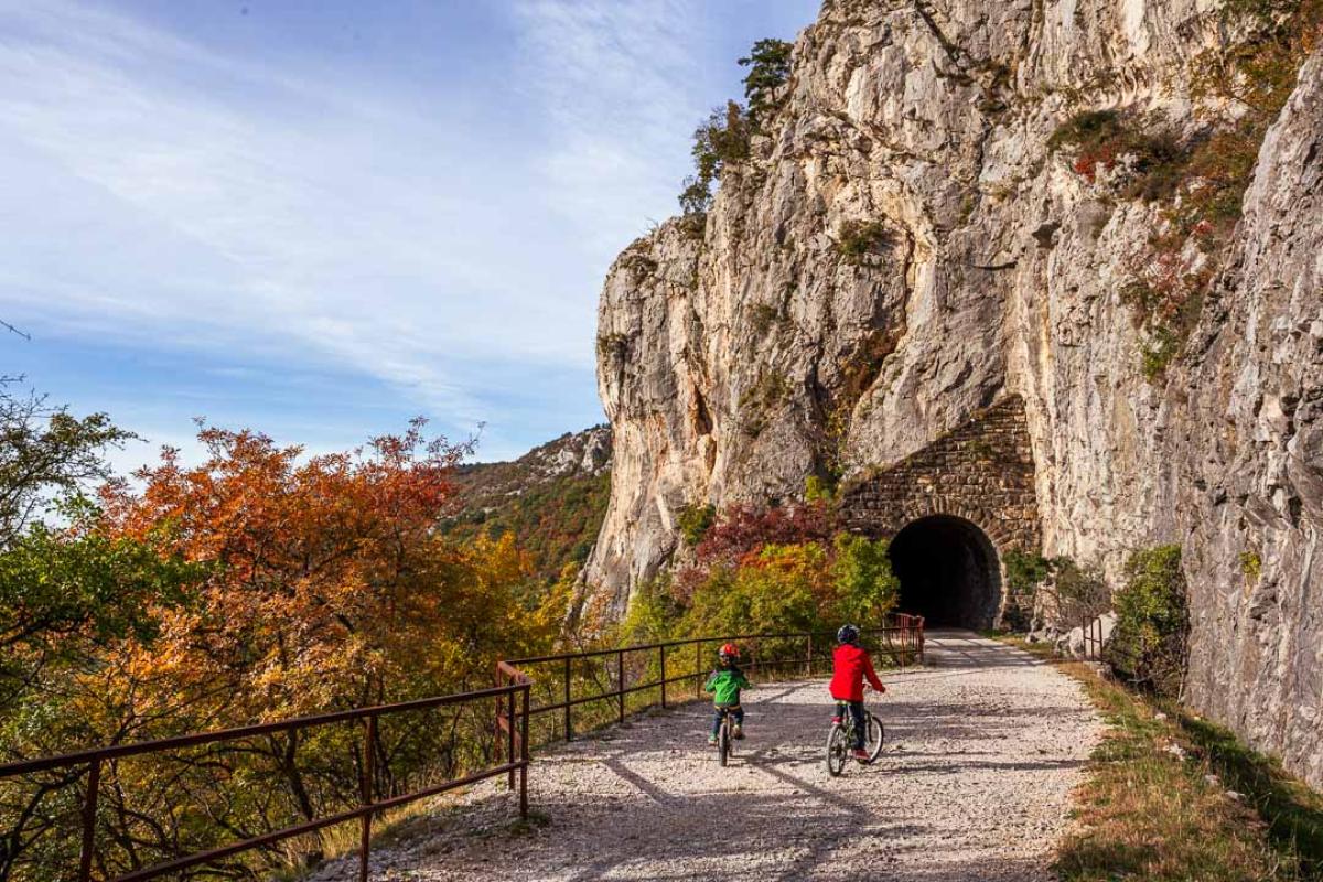 Provenendo da Ljubljana, ci si può fermare alle splendide grotte di Postumia, per poi attraversare il confine sloveno e giungere a Trieste, il principale sbocco al mare dell’Impero asburgico. Si segue la strada per Kozina, da cui si devia verso Klanec. Superata una rotonda, si gira a destra e si imbocca la ciclabile realizzata sull'ex ferrovia Trieste-Hrpelje. Dopo l’abitato di Mihele, si entra in Italia nei pressi di Draga Sant’Elia.
