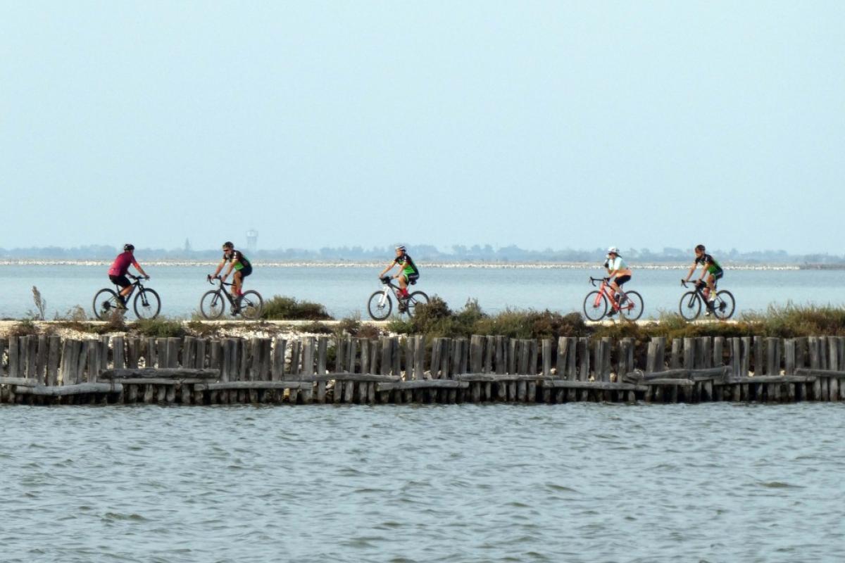 Un'altra barca ci porta poi a Chioggia, “la piccola Venezia” perché caratterizzata da ponti, calli e canali. Da Chioggia usciamo attraversando i rami di Brenta, Adige e Po, qui sembra di pedalare in mezzo al mare ed in effetti l'acqua circonda ogni cosa. Tramite un passaggio in barca arriviamo a Porta Levante, qui si può entrare nella golena di Ca’ Pisani, dove fare foto naturalistiche o birdwatching. Con un po' di fortuna si vedono i fenicotteri rosa, in posa su una zampa mentre cercano i gamberetti di laguna.