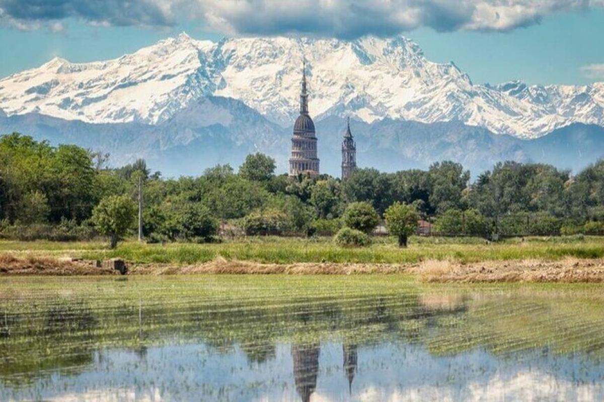 Proseguiamo per Bussoleno, Sant’Antonino e Chiusa di San Michele: siamo ai piedi della famosa Sacra di San Michele, un monastero che domina il passaggio. Procediamo fino al parco naturale del lago d’Avigliana, passiamo da Orbassano e ammiriamo la reale Palazzina di Caccia di Stupinigi, sito UNESCO progettato da Filippo Juvarra per la casa reale dei Savoia. Da qui arriviamo a Torino seguendo il Po, passiamo sul ponte Vittorio Emanuele I, davanti a noi, la Gran Madre e il colle di Superga. Lasciando Torino, seguiremo la ciclovia VenTo e troveremo il Canale Cavour, costruito nel 1866. Importantissimo per le risaie del territorio, scorre in un’area ecologica adatta al birdwatching. Una piccola deviazione a Vercelli, per incrociare la Via Francigena, e poi saremo a Novara: all’ombra di San Gaudenzio, Novara è devota al Gorgonzola e alla Paniscia, un piatto tipico a base di riso da servire bollente in inverno.
