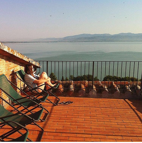 Il tracciato di questo anello intorno al lago che ci farà conoscere tutto il territorio da punti di vista originali, attraversando borghi, campagne e tratti di costa pittoreschi, si sviluppa per lunghi tratti lungo la pista ciclabile, in parte su tracciato promiscuo. Il percorso, lungo complessivamente 71 km, parte da Castiglione del Lago, nella zona dell’ex aeroporto, e può essere percorso senza troppa fatica, facendo soste nei paesi, nelle aree di ristoro e nei numerosi luoghi panoramici che si incontrano. Il paesaggio è vario, diverse le storie anche se appartenenti a un microcosmo che le accomuna tutte e le rende riconoscibili, molti gli incontri interessanti che si possono fare sospesi tra storia e natura. Tra Castiglione del Lago e Tuoro, spostandosi dal promontorio su cui sorge l’antica rocca per andare verso la costa nord chiusa da alte colline boscose, si percorre un’area rinaturalizzata di elevato interesse naturalistico-ambientale. Poi si attraversa Borghetto e si percorre un tratto in cui si lambiscono le rive del lago fin quasi a toccarlo. Si prosegue quindi verso il Lido di Tuoro e Passignano, alternando alla bella ciclabile solo brevi tratti su tracciato promiscuo che permettono di attraversare i centri abitati. Da Passignano a Torricella il tempo passa veloce e senza accorgersi, attraversando il territorio di Magione, si percorre una bellissima zona tra il lago e basse colline piene di olivi e antichi casolari. Si tocca il piccolo lido attrezzato di Albaia prima di giungere a Monte del Lago e poco dopo al Castello di Zocco dove si torna sulla Provinciale. San Feliciano, antico borgo di pescatori, merita una sosta e da lì si riparte verso l’Oasi della Valle (un centro natura gestito da Legambiente dove è possibile l’osservazione dell’ecosistema lacustre nei suoi molteplici aspetti), per poi seguire all’incrocio successivo, l’indicazione per Castiglione del Lago-Chiusi. Percorrendo la panoramica statale, si attraversa il borgo di Sant’Arcangelo, avendo sulla sinistra i boschi di Montebuono e della Marzolana e sulla destra gli incantevoli scenari lacustri, con le isole che sembrava volare, tra acqua e cielo che si confondono. Giunti al bivio per Casalini si decide se puntare direttamente su Castiglione del Lago, oppure si allarga passando da Casalini, Macchie e Sanfatucchio, piccoli borghi di origine agraria costruiti su minimi rialzi collinari. Qualunque sarà la scelta il giro avrà saputo raccontarci un storia circolare, fatta d’acque, animali, terra, e uomini, un’esperienza gratificante che saprà accompagnare e ritmare, coi suoi ricordi e riferimenti, il resto del viaggio.